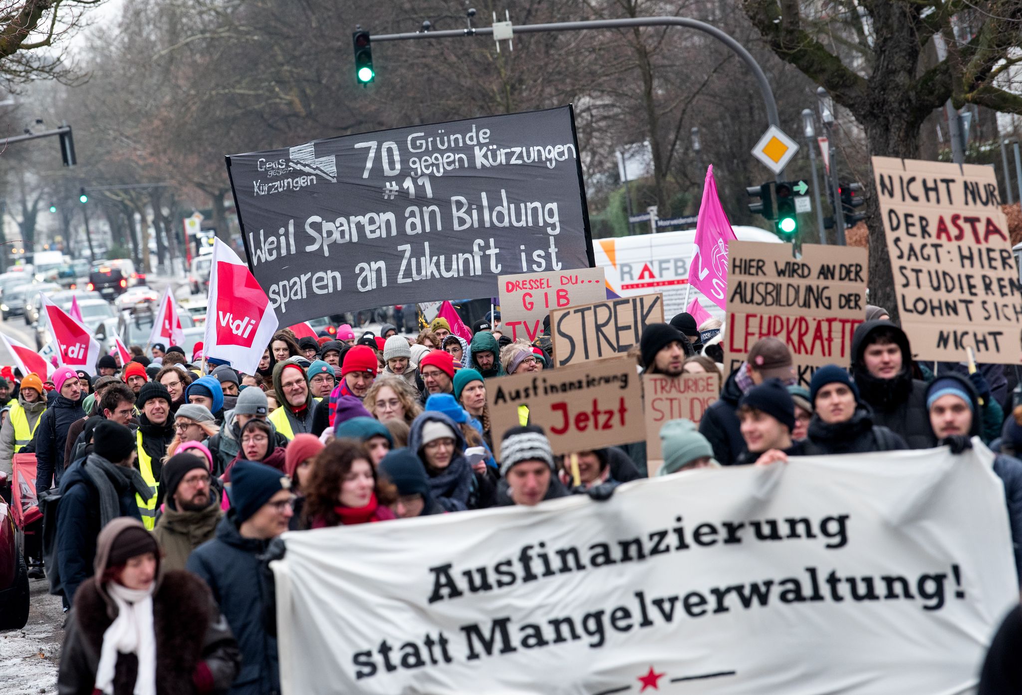 Hamburg (dpa/lno) – Hunderte Beschäftigte der Hamburger Hochschulen sind in der Tarifauseinandersetzung im öffentlichen Dienst in einen Warnstreik getreten. Nach Angaben der Gewerkschaft Verdi beteiligten sich mehr als 1.000 Menschen an dem Demonstrationszug, der vom Campus der Universität zur Hochschule für Angewandte Wissenschaften führte. Die Arbeit niederlegen sollten beim bundesweiten Branchenstreiktag alle studentischen Beschäftigten, alle Tarifbeschäftigten, Auszubildenden und Praktikanten... Mehr lesenHunderte Hochschulbeschäftigte haben nach Angaben der Gewerkschaft Verdi bei einem Warnstreik in Hamburg die Arbeit niedergelegt. Daniel Bockwoldt/dpa/Daniel Bockwoldt