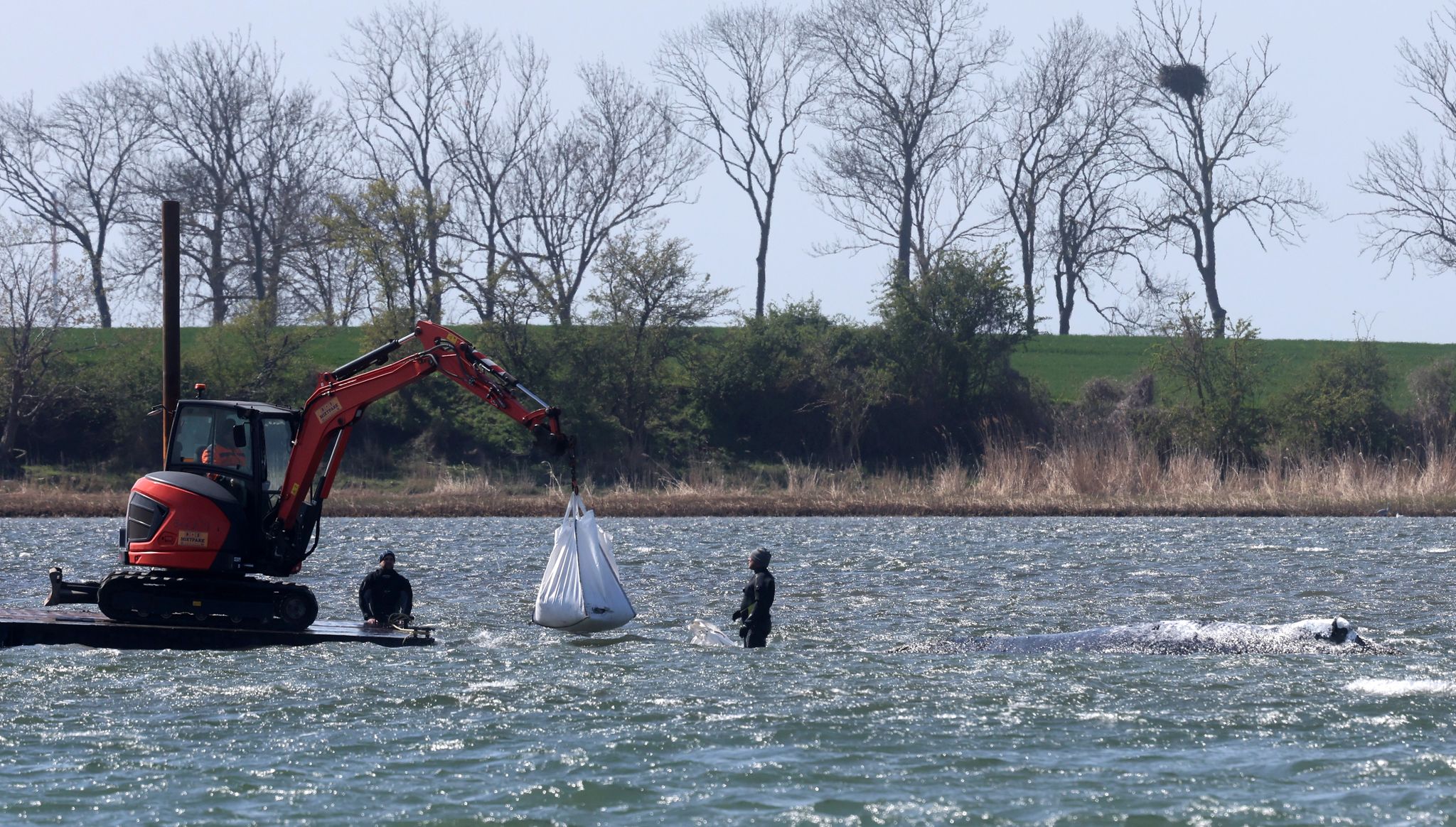 Kirchdorf (dpa) – Der jüngste Plan zur Rettung des gestrandeten Buckelwals in der Ostsee kann weiterhin nicht umgesetzt werden. Am Konzept müssten noch einige Nacharbeiten stattfinden, sagte der Chef des von der Rettungsinitiative beauftragten Baggerunternehmens, Fred Babbel, nach einer Lagebesprechung am Abend. Die Initiative bekomme vom Umweltministerium dafür Punkte benannt. Noch am Abend werde sich die Initiative an die... Mehr lesenDer Buckelwal wird von Helfern vor der Insel Poel mit Wasser aus einer Gießkanne bespritzt. Marcus Golejewski/dpa